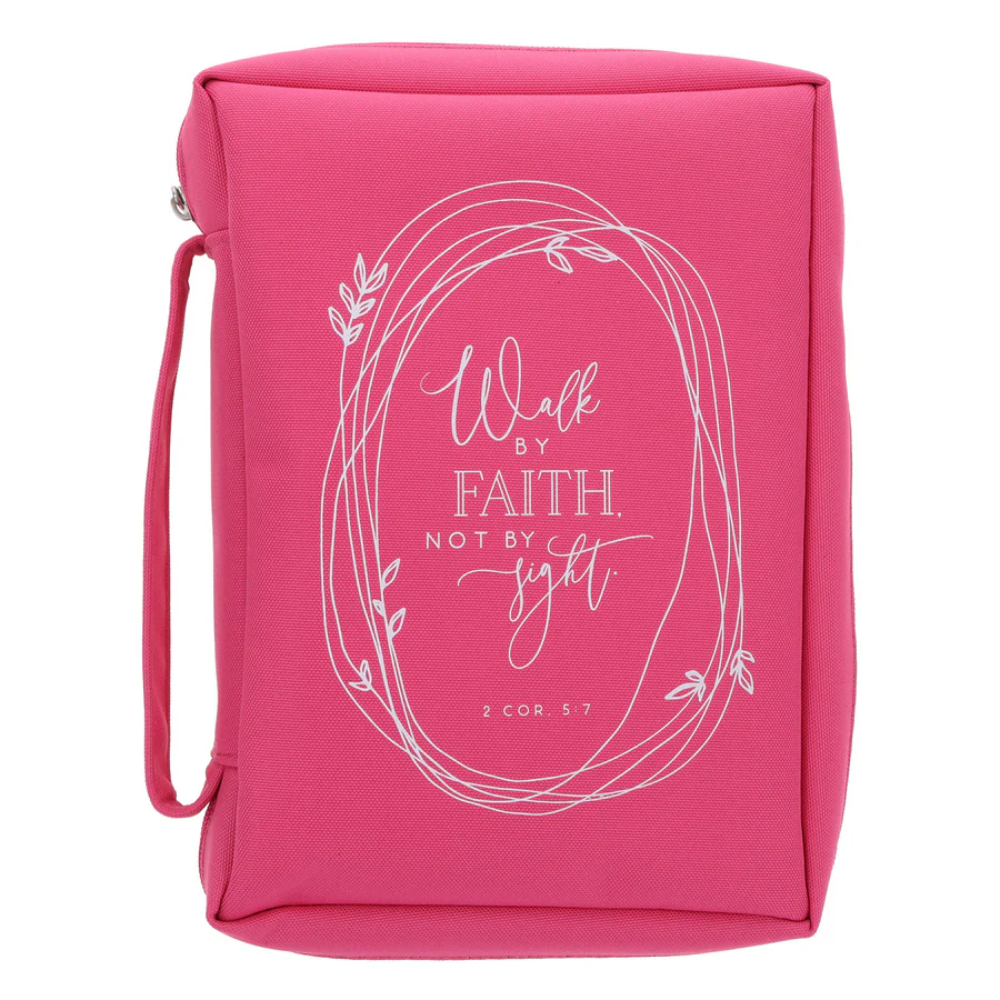 Polyester Bible bag with “Walk by Faith, Not by Sight” message.