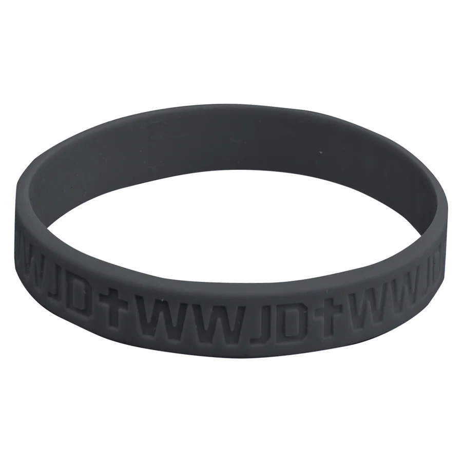 What Would Jesus Do? This charcoal silicone wristband keeps the question close at hand, prompting thoughtful choices and faithful living.