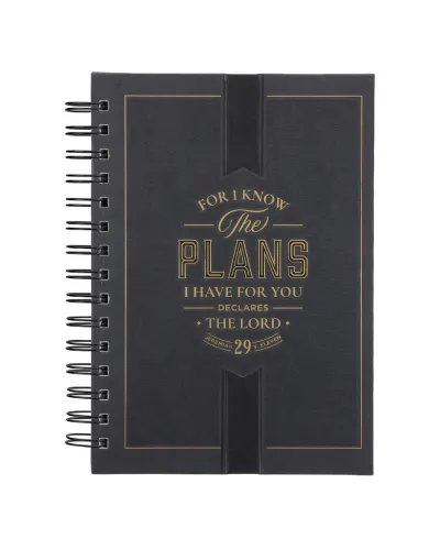 Jeremiah 29:11 in a sleek black design. Perfect for goal-setting and prayer journaling.